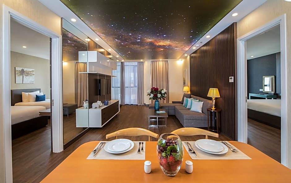 The rooftop pool is the standout feature of this apartment. This spacious apartment features 1 living room, 2 separate bedrooms and 2 bathrooms with a shower and free toiletries. The well-equipped kitchenette has a stovetop, a refrigerator, kitchenware and an electric kettle. The air-conditioned apartment features a flat-screen TV with satellite channels, a mini-bar, a dining area, a wardrobe as well as city views. The unit has 2 beds.